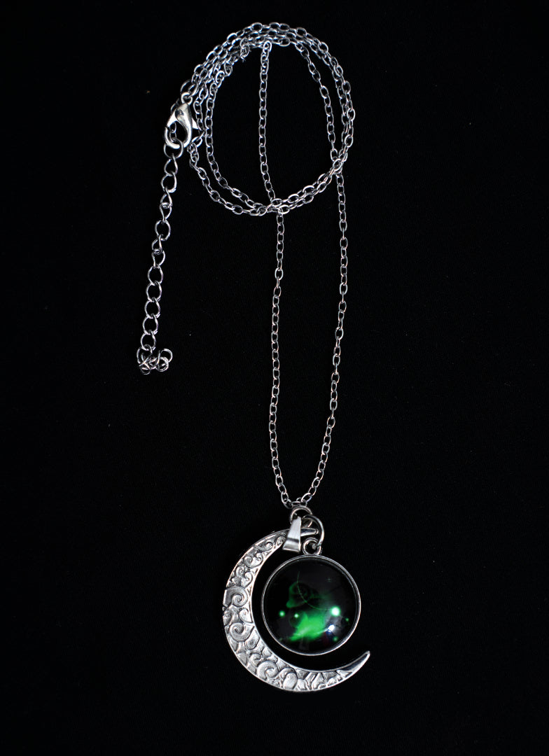 Pendant Size: Approximately 3.5 cm (moon) with 2 cm cabochon
